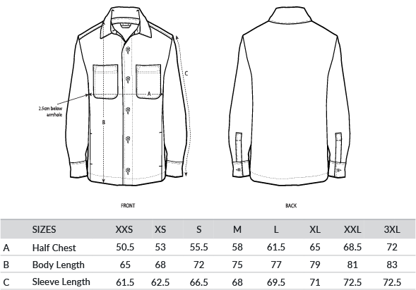 Unisex, unlined shirt jacket. Set-in sleeve. Self-fabric collar with collar stand. Button-down front placket with one button on sleeve cuff. Chest pockets and side seam pockets on both sides. Inside hanger loop in grosgrain tape. Spare buttons attached on inside seam. OEKO-TEX® certified. Fairwear certified. Global Recycled Standard certified. Vegan certified.