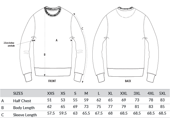 Modern medium fit. 1x1 rib at neck collar, sleeve cuff and bottom hem. Self-fabric half-moon at back neck. Inside herringbone back neck tape. Twin-needle topstitch centred on seam at hem, cuff and armhole. Vegan, GOTS, Fair Wear, OEKO-TEX® certified.